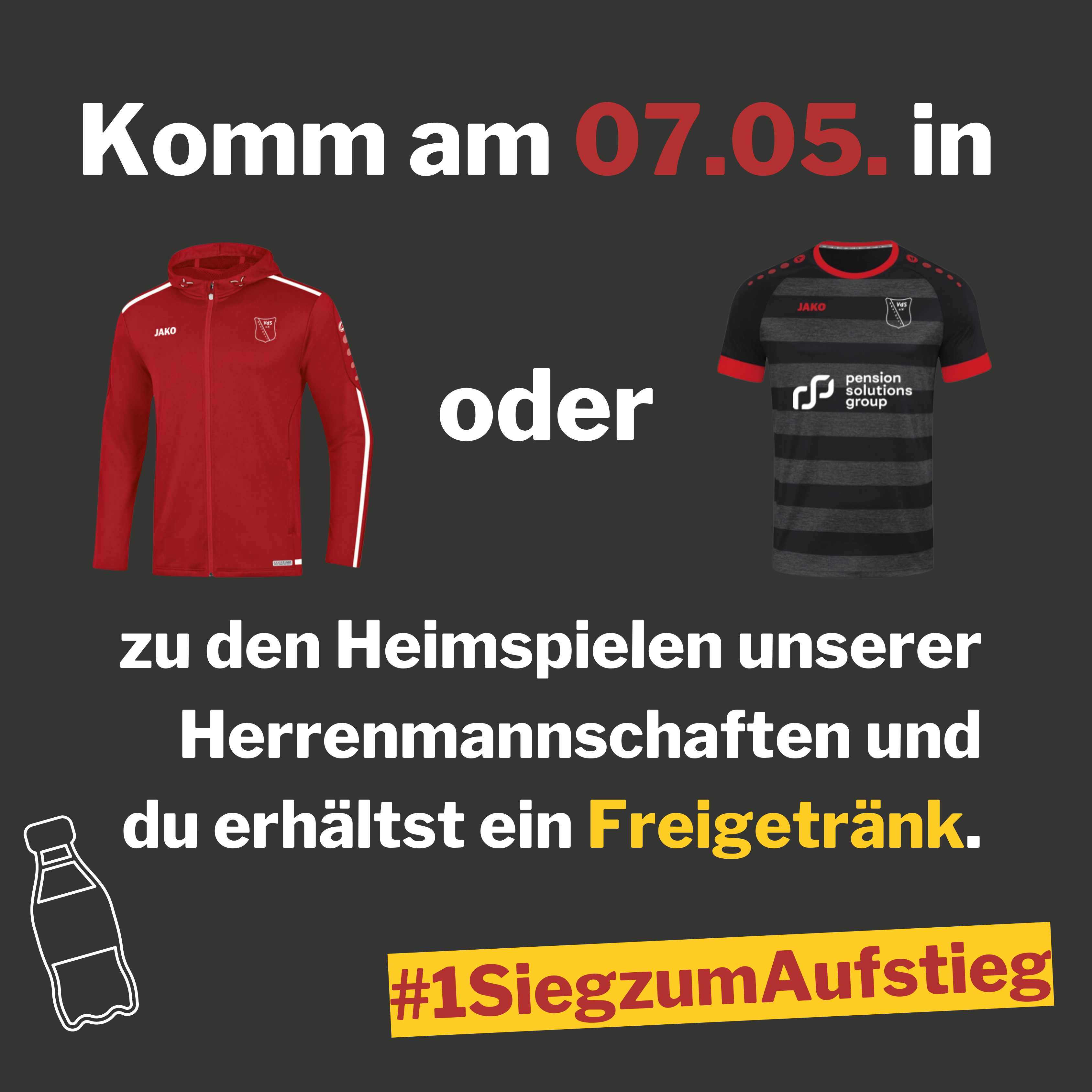 Herrenmannschaften in Vereinskleidung, erhaltet ihr ein Freigetränk! 🥤