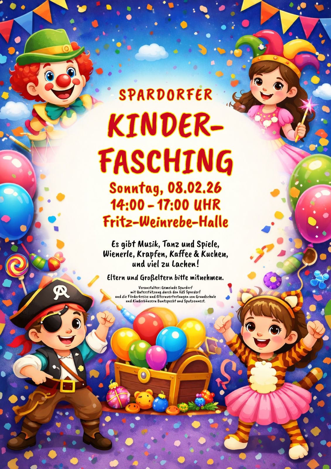 Am Sonntag, 08.02.2026 von 14:00–17:00 Uhr wird die Fritz-Weinrebe-Halle bunt, laut und fröhlich!